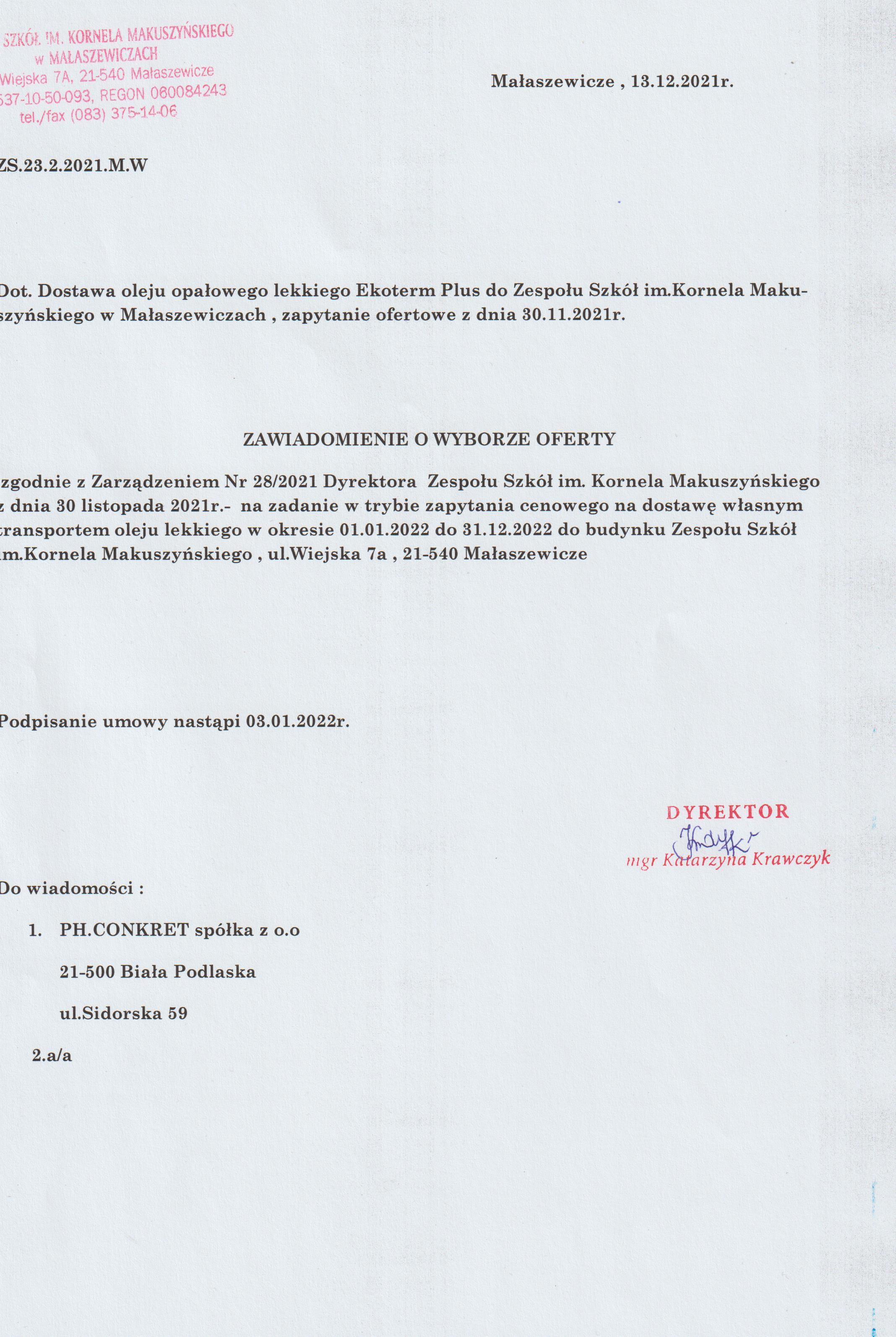 powrót do listy przetargówDostawa własnym transportem 30 000 litrów oleju opałowego lekkiego